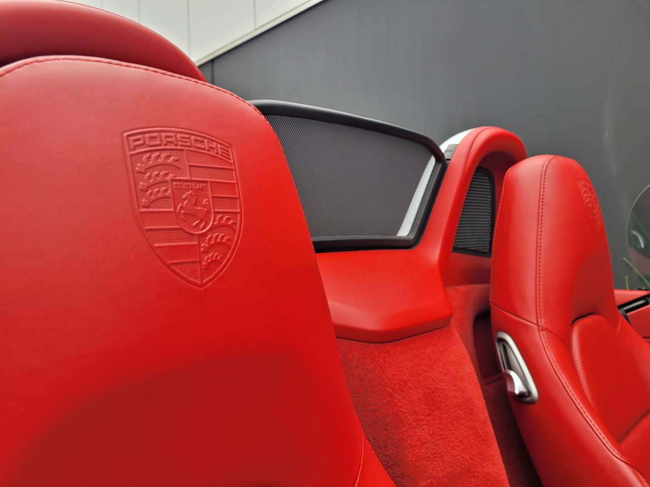 * Porsche-wapen in reliëf in hoofdsteunen