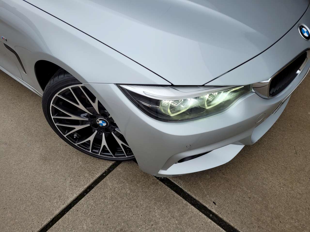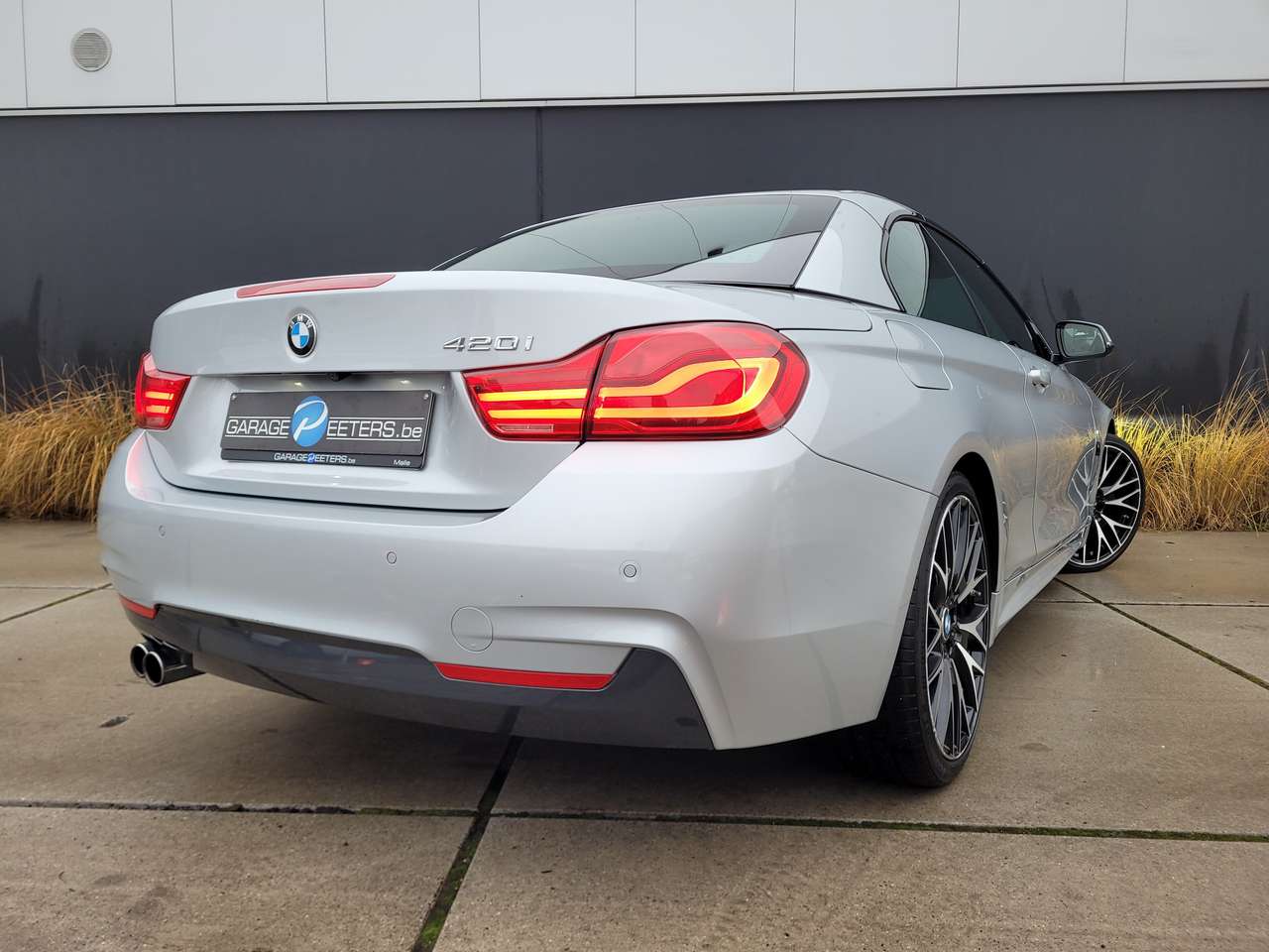 Deze BMW 420i Cabrio in Glacier Silver metallic combineert een sportieve uitstraling met verfijnde premium details zoals Head-Up Display, Adaptieve LED-koplampen en het volledige M Sportpakket.