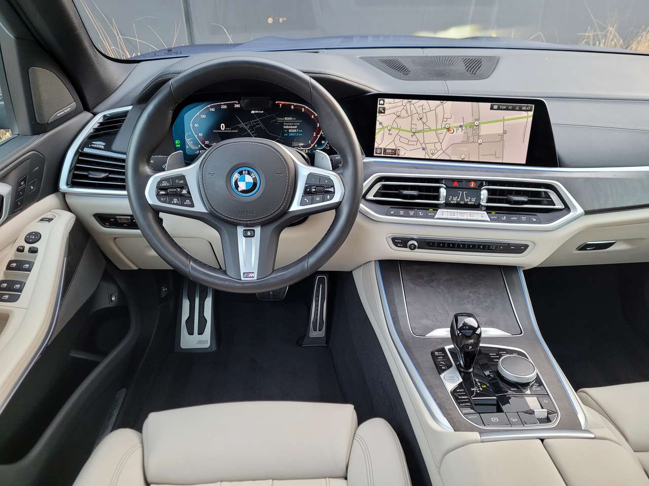 Deze BMW X5 xDrive45e in Phytonic Blau combineert krachtige plug-in hybride prestaties met luxe Merino leder en het sportieve M Sportpakket.